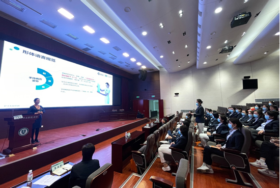 (圖為禮儀培訓講座現(xiàn)場)